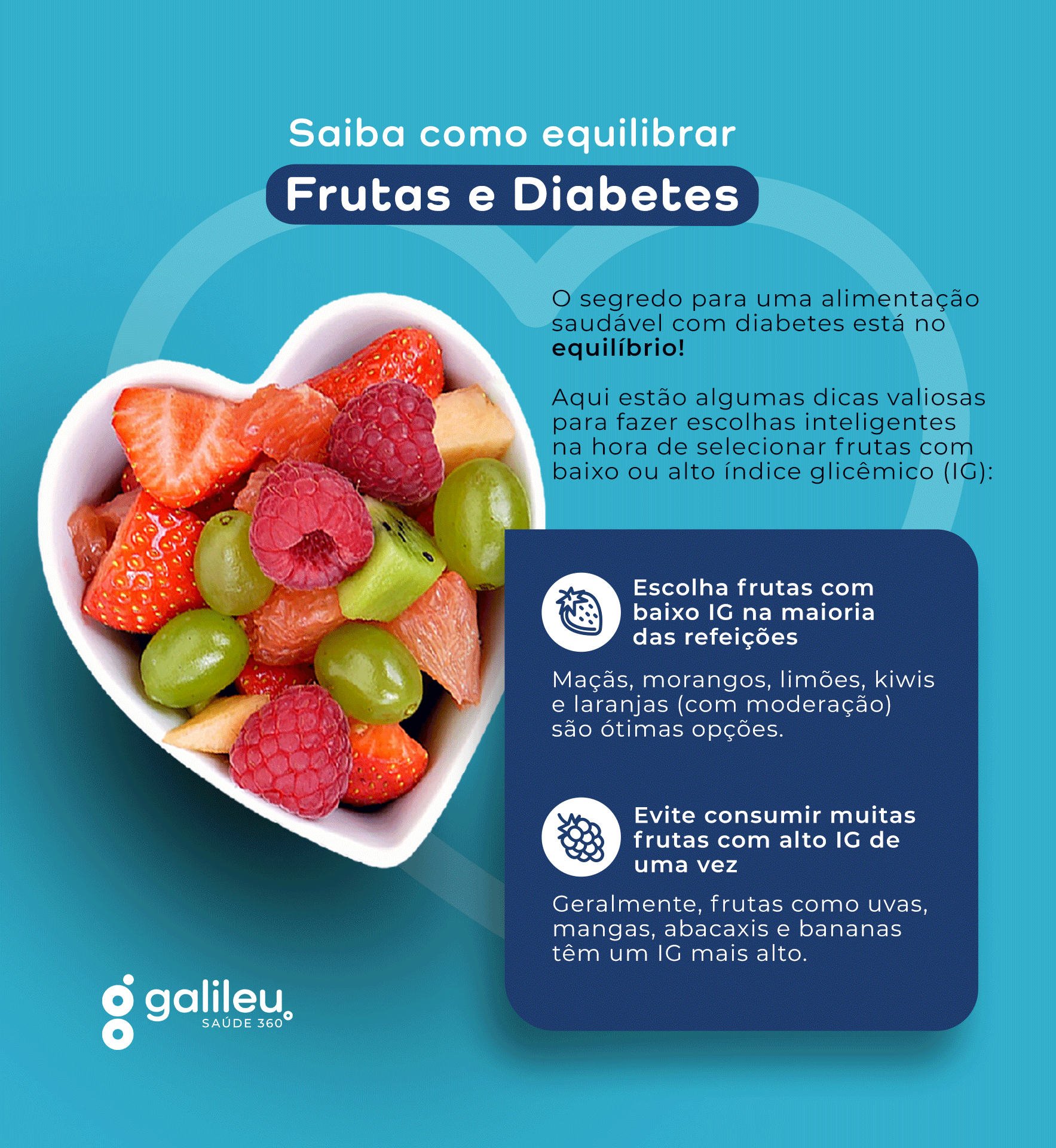 Quem disse que frutas são proibidas para quem lida com o Diabetes? O segredo é o equilíbrio! Confira as nossas dicas 👇